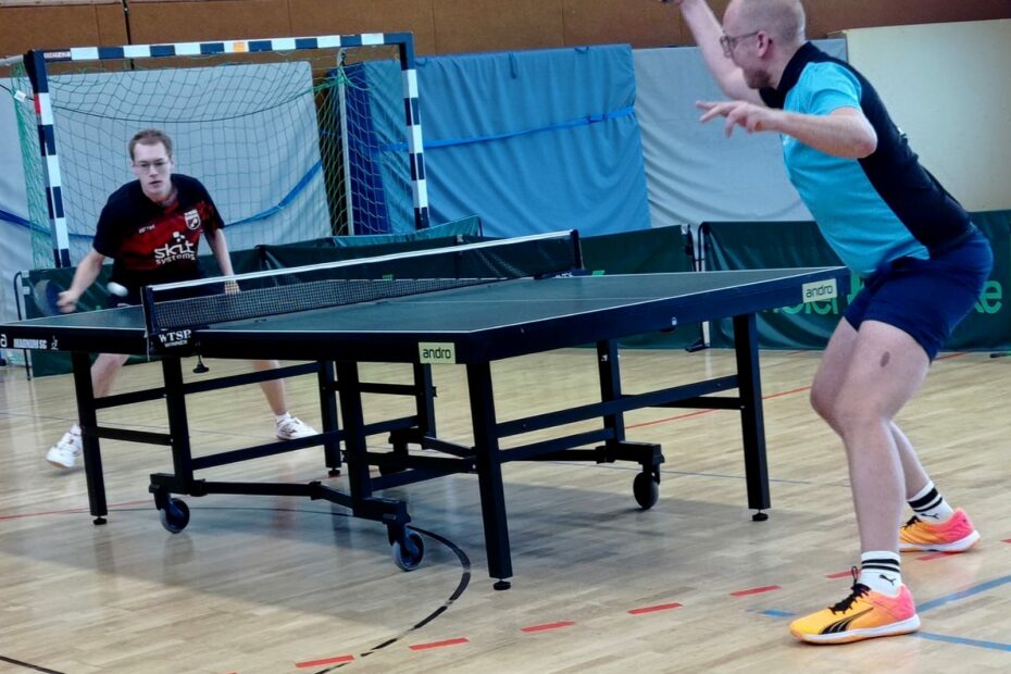 Von Anfang an entwickelte sich ein spannendes und hochklassiges Spiel, so dass die Zuschauer auf ihre Kosten kamen. Insbesondere das Doppel 3 war sehr ausgeglichen und erst im fünften Satz konnten sich die Öhringer zur 2:1-Führung durchsetzen. Nach dem ersten Durchgang führte die TSG 6:3 und es waren schon über 2 Stunden gespielt. Dabei gab es einiges aus Öhringer Sicht zu bestaunen. Timo war nach seiner langwierigen Verletzung am Unterarm wieder zu alter Stärke zurückgekehrt, David spielte konsequent auf hohem persönlichem Niveau und alles Öhringer gaben ihr Bestes. Ein kleines “Highlight” war das Spiel von Andi, der nach 0:2-Satzrückstand in fast aussichtsloser Lage im dritten Satz eine Auszeit nahm und die nächsten drei Sätze 13:11, 14:12 und 11:7 gewann.